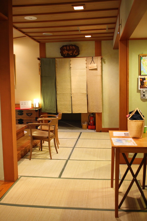 玄関入って左手にフロント・囲炉裏・食事処入り口