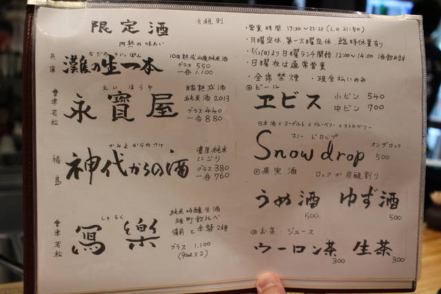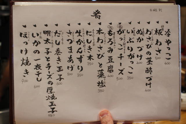 カウンターのみになって、動線が良くなった。旧店舗ではお酒の注文回数を増やしたくなくて必ず一合で頼んでいたが、グラス(半合)の注文が気軽にできるようになったのは嬉しい。バイトじゃなくて店員さんらしきお兄ちゃんもいたし