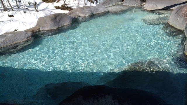 日が高くなると、建物の影が小さくなり湯船が照らされ始める…