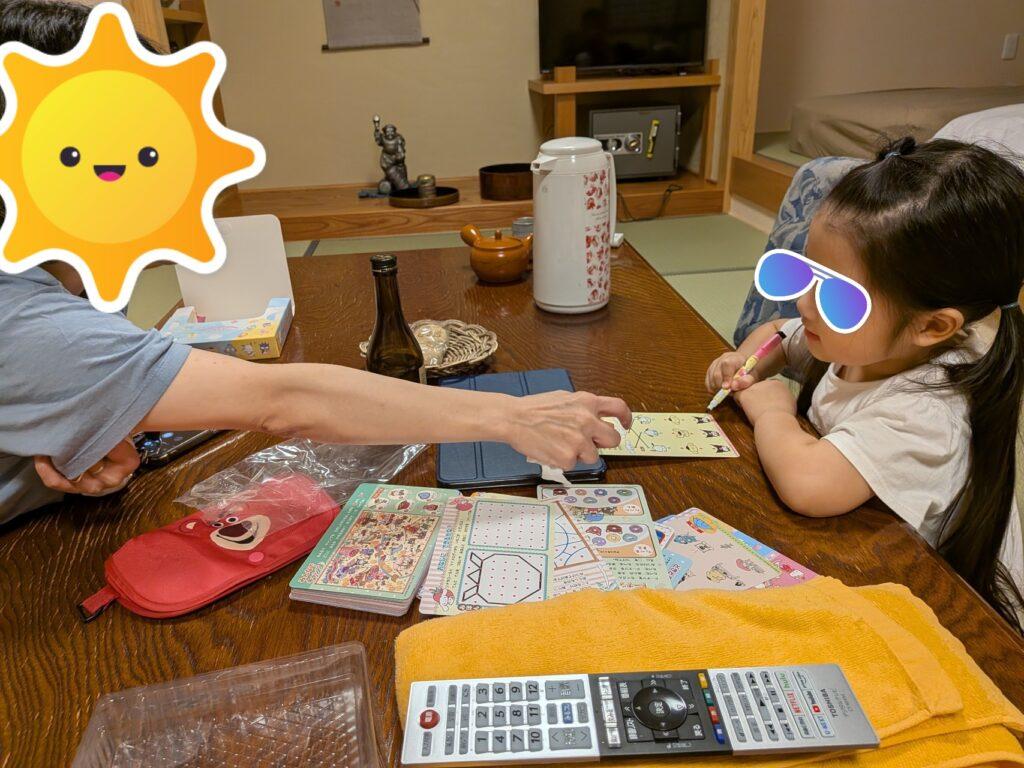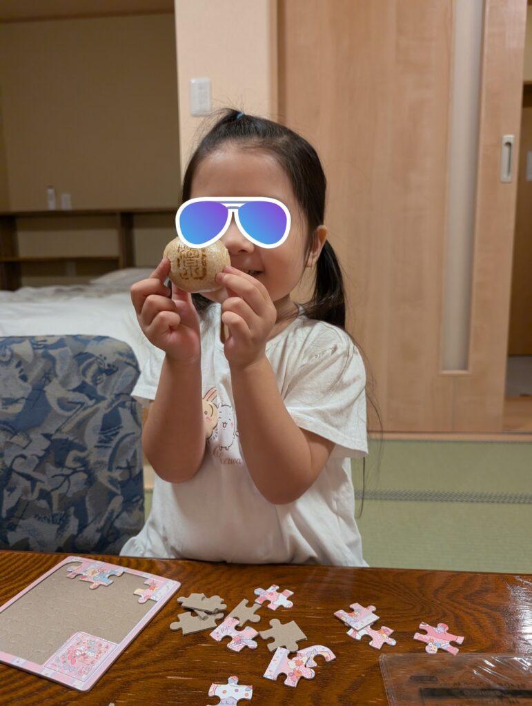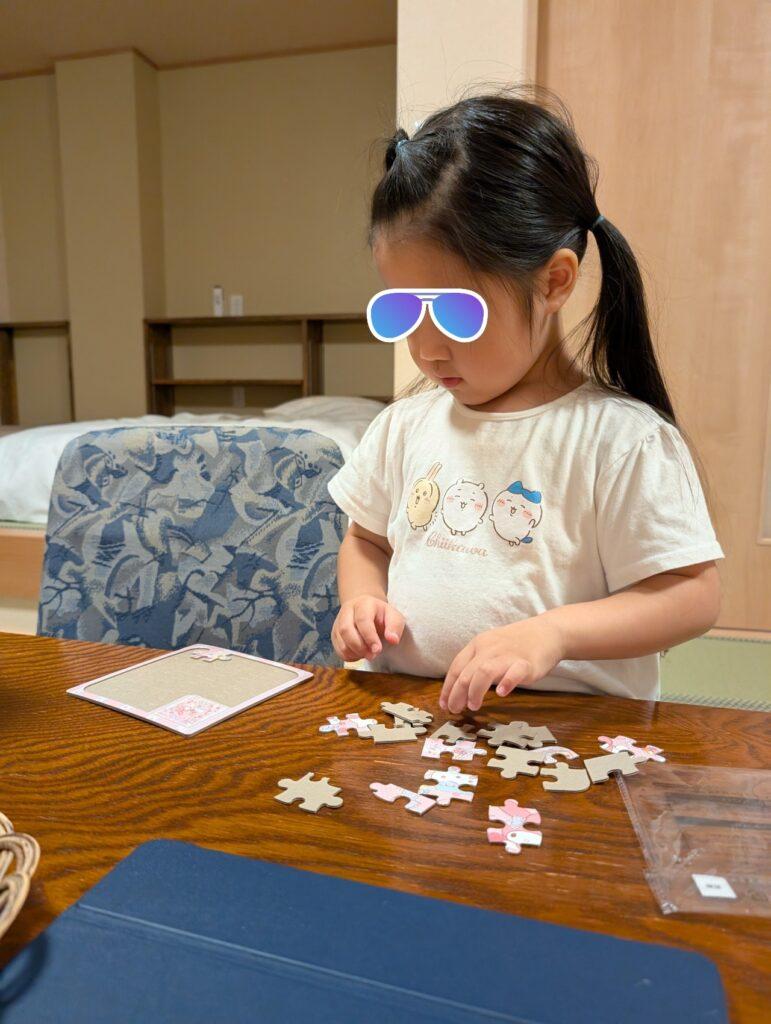 那須で寄った中華料理屋さんでもらったパズルが旅行中にずっと役立ってくれています