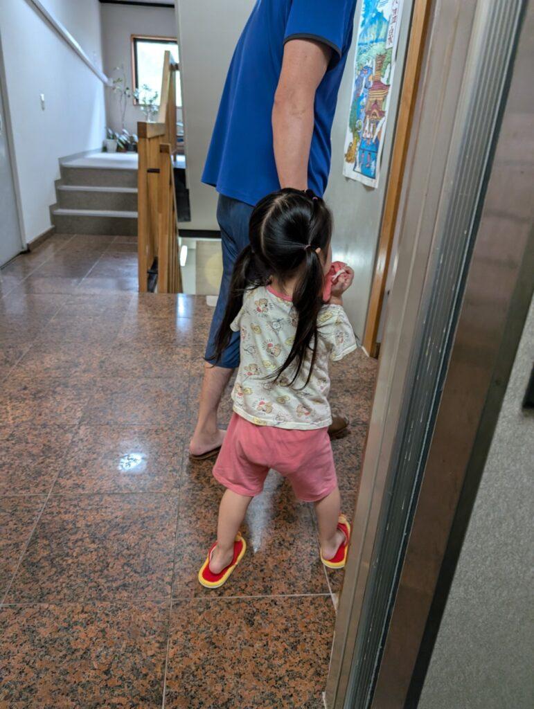 昨日の夜一緒に遊んでもらってからずっと「お姉ちゃんと遊びたい」を繰り返していました。そういう表現が出来るなら直接言えば良いのにと思いながら煩いのでロビーに様子を見に行きます