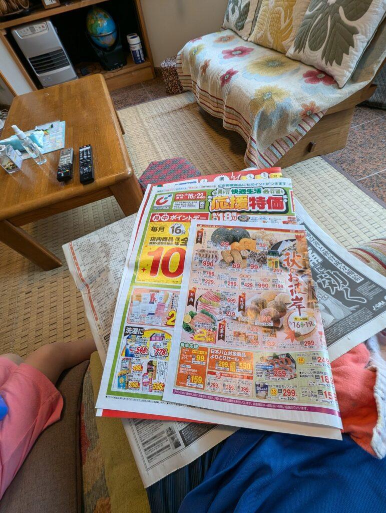 買わないのにチラシを眺めたり。ロビーに新聞置いてある旅館は時々ありますが、チラシは抜かれていることが殆どです。でも旅行者としては新聞よりもチラシの方が旅行気分が味わえて良かったりする