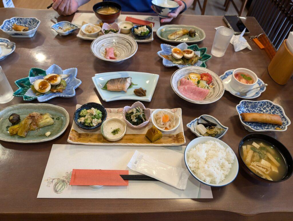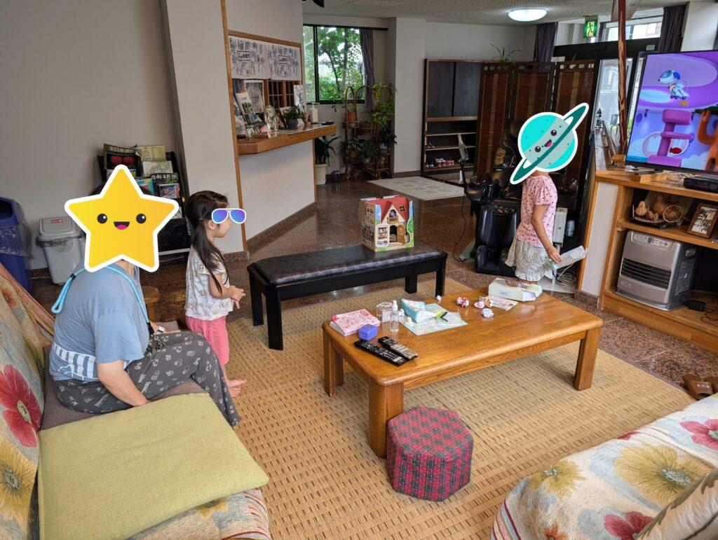 今までは朝風呂を浴びに外湯に出掛けたり、温泉卵作りをしたり自分が忙しかったのですが、子供が活発になるにつれて主体性を奪われていきます。ライブカメラでは天気が良くなかったのですが、晴れれば良いなぁと思いつつ朝食