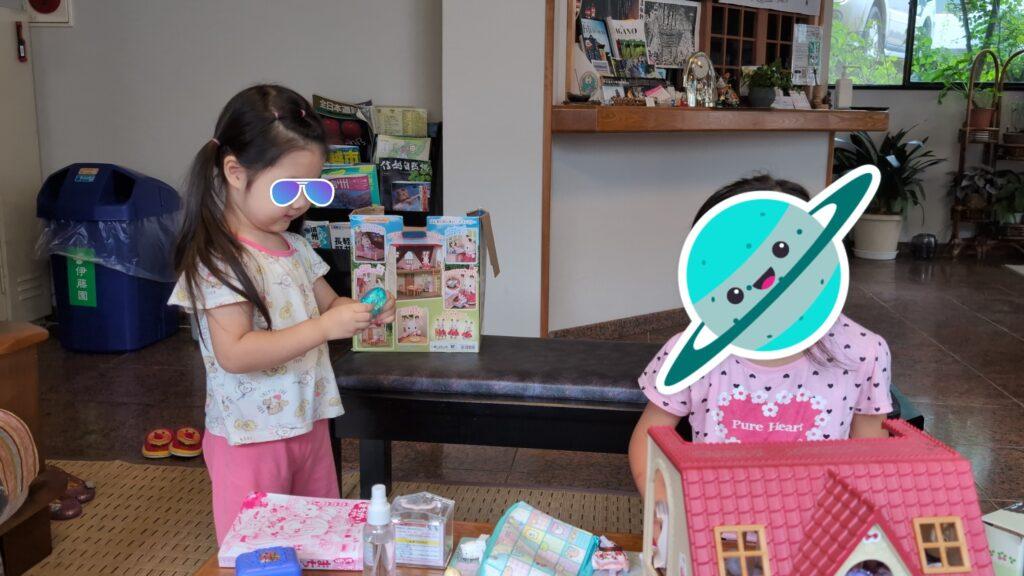 シルバニアファミリーは自宅にもあるのですが、ごっこ遊びは一人では楽しめないみたいです。僕らが一緒に遊んでやればよいのですが、なにせ小さくてめんどくさい。今では子供すら「しまって良い」との事でお蔵入りです。真似をすることが友好を示す唯一の表現です。健気