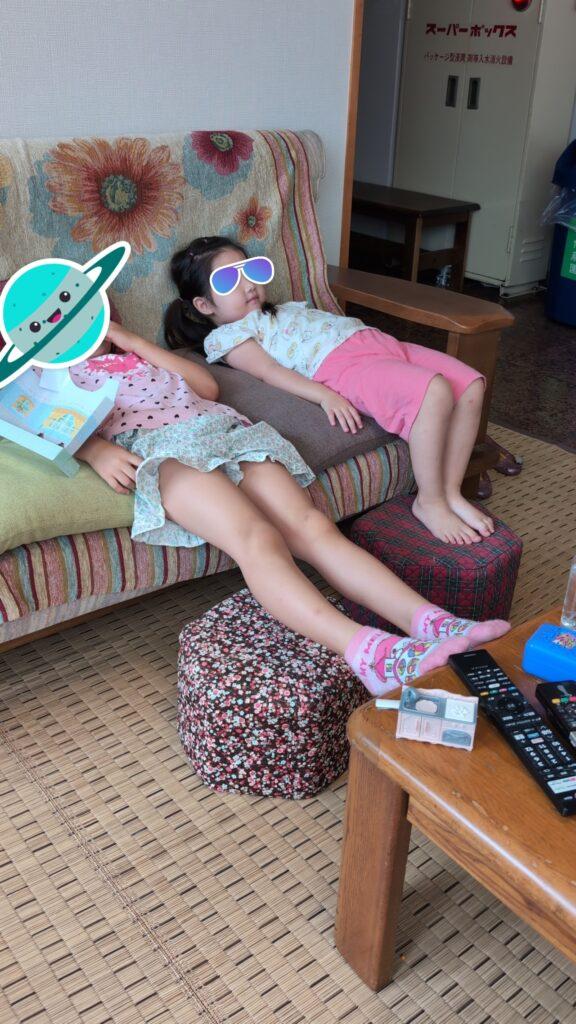 朝食を食べきると一日分の栄養を摂り終えたような実感があります。食べたらお昼までは動きたくない。でも子供の「お姉ちゃんと遊びたい」攻撃があるので食後はそのままロビーへ