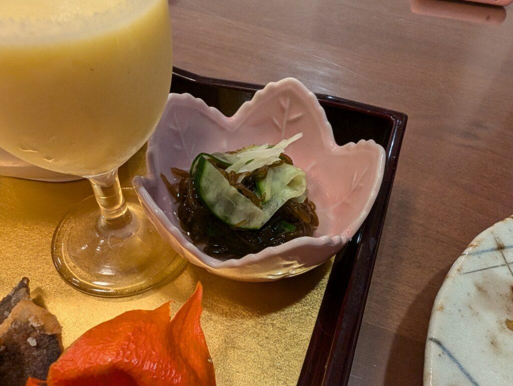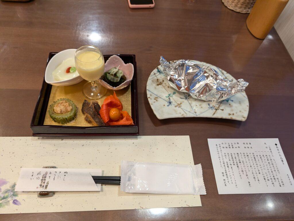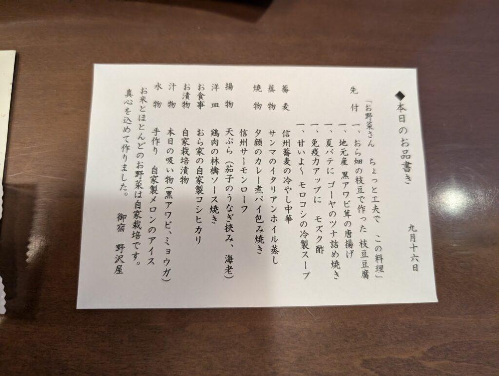 お品書きも丁寧で説明も有りなので、何を食べているのか分からないみたいな事は起こりません。稀に説明が疎かだったり聞きなれない食材を早口で言われて聞き取れなかったりして悲しい気持ちになる時がありますが、そういう小さいストレスも何気に次の宿泊へ繋がらない理由になったりします。夕食の満足度ってボリュームとか食材とかが重要ではなくて居心地の良さの方が記憶に残るなぁと思うのですが、どうですか?配膳スタッフがバタバタしてたりほかの宿泊者が煩かったり暑かったり寒かったりするとウンザリしてしまいます。結局リスク回避をしていると小さくてリピーターの多い宿が一番落ち着く場所として再訪頻度が上がります。