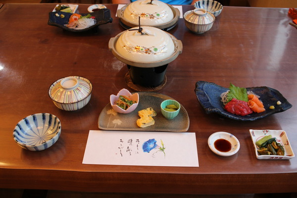 同泊者一組だけでさらに悪いことに彼らは朝食付きプランだったので、夕食は僕らだけ。結局大迷惑をかけてしまった。申し訳ない。ちなみに同泊の人は当日に観光協会を通して予約したら2食付きは間に合わなかったそうである。