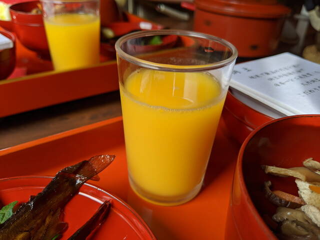 いつもはぶどうジュースだが、現在手に入らないとのことでオレンジジュース