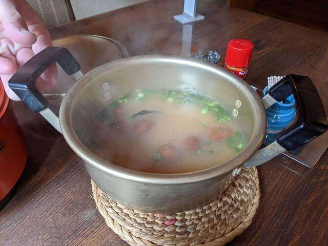 周りでお代わりしている人を見て、時分もお代わりしよと意気込むも湯豆腐を食べ終わる頃には「もう充分」となる