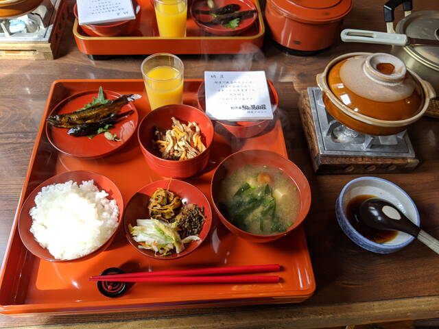 客観的に画像を眺めてみたら、えらくシンプルな内容なんだなと思った。卵料理もないしベーコンもないし。でも駒の湯での朝食は質素だと感じたことは一度もない。物足りないと思ったこともない。