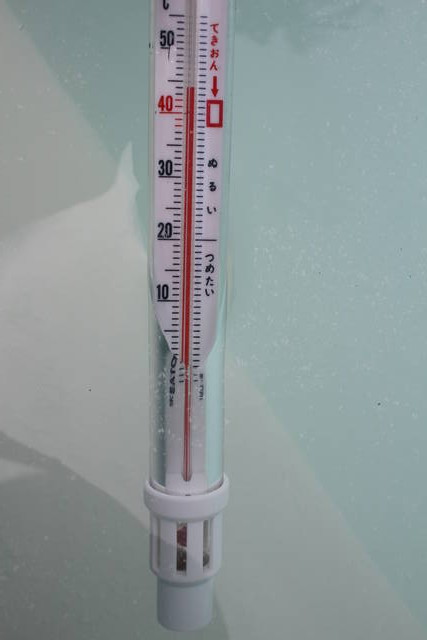 44℃、加水もできず寝湯に浸かるも紫外線が痛い
