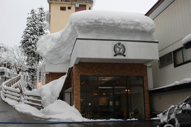 大湯温泉に近づくと雪壁が高くなります