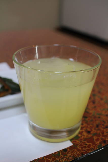 お茶が入ったポットと冷水が入ったピッチャーがあるのはとても有り難い