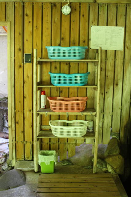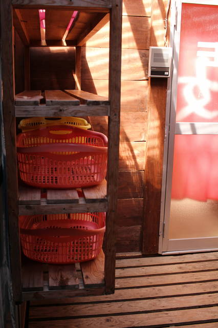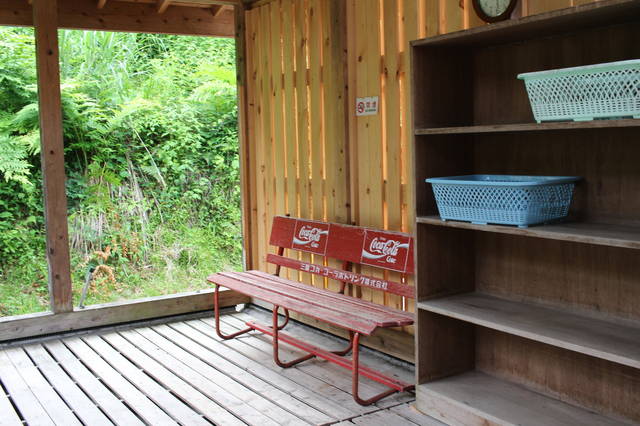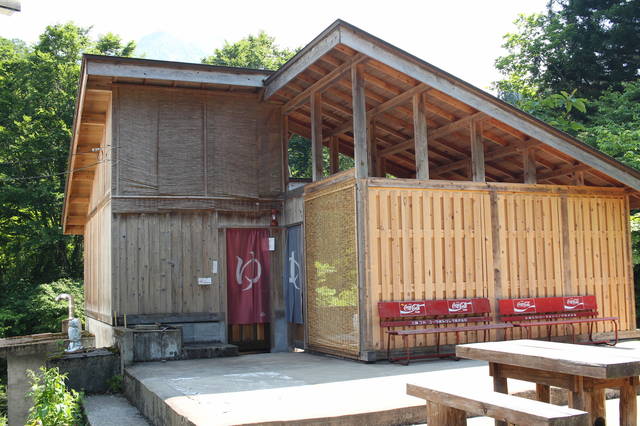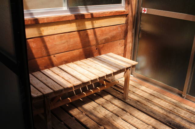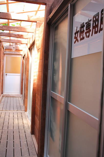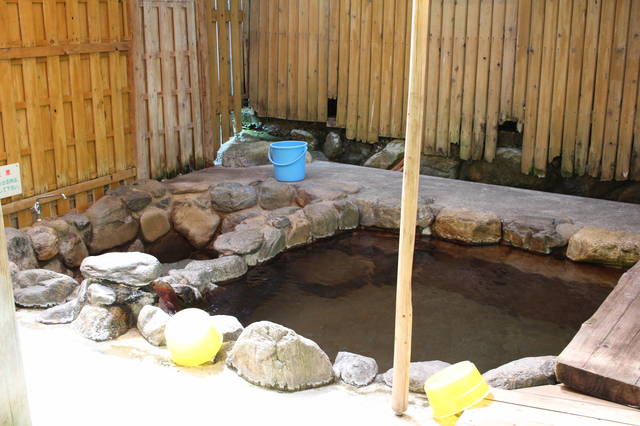 外湯はご主人のDIYで目隠しができました