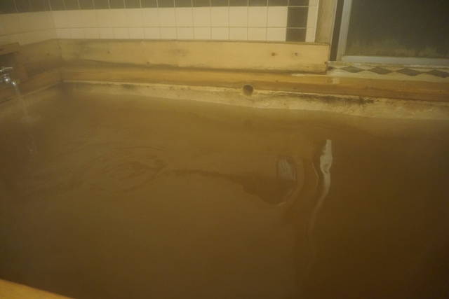 それにしても熱い。福島屋旅館で熱湯に開眼したはずなのに50℃超えてるじゃないかという熱さ。そっと足を浸けると毛穴全てに針が刺さったような感触を楽しめる。「うめて入って」と言われたけど10分間水を最大に出し続けても下がる気配がない。天井からは結露した水滴が小降りの雨(大粒)のように背中に落ちてくる。服脱いじゃってるもん。我慢できずに足を入れるが我慢できずに引っ込める