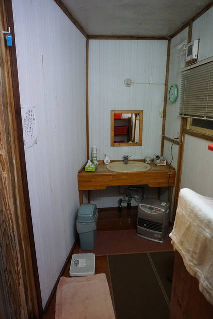 食後、お風呂に向かう。湯船が狭くお湯を貯めやすいとの理由で女湯を使う