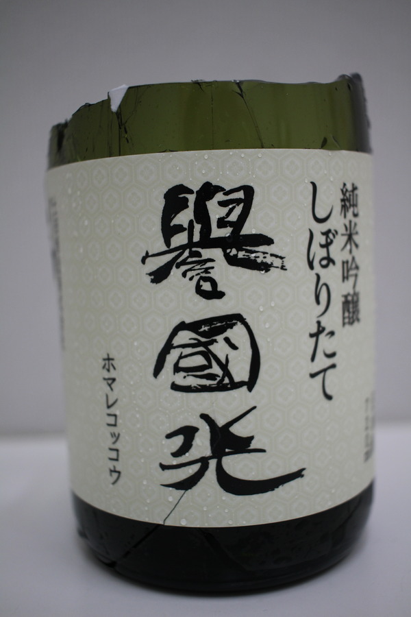 なんで割れた瓶を映しているのか。それは呑む前に割ってしまったからです。無造作に後部座席に放り投げておいたのがいけなかった。ドアを開けたときにパリーン。酒蔵さん申し訳ありません。
