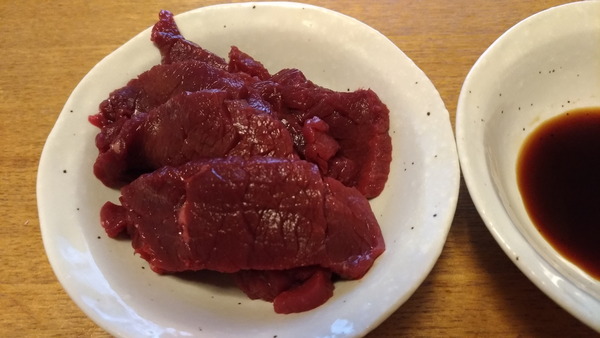 店内に入ると無人だったが、天井のスピーカーから「はい、いらっしゃい」と声がしておばちゃんが現れる。近未来だ。「馬刺しがほしい」と伝えると少し狼狽える。常連さんとの会話から店主が入院中で不慣れみたい。