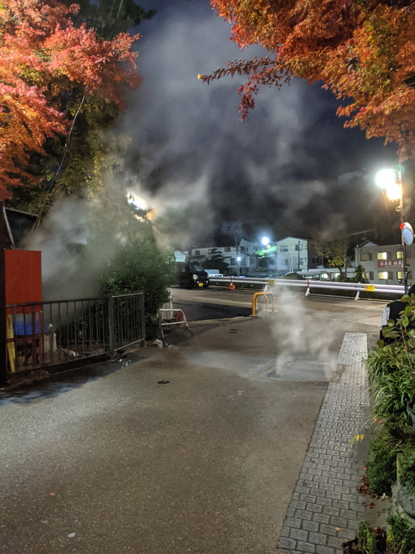 夜明け前、部屋から見える湯気の写真を撮りに外へ出る