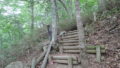 階段を過ぎて木の根をすべり止めにしながら登ります。