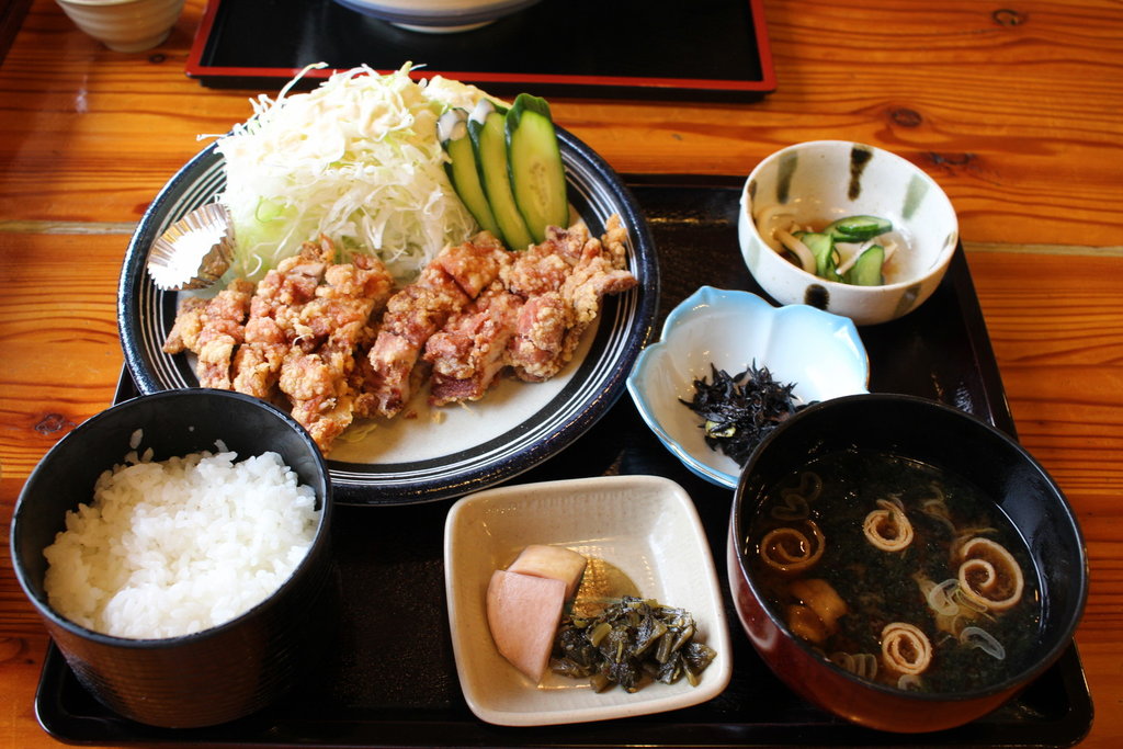 ソフト麺でも良いかと思っていたら、きちんとした蕎麦でした。山賊焼き定食1100円