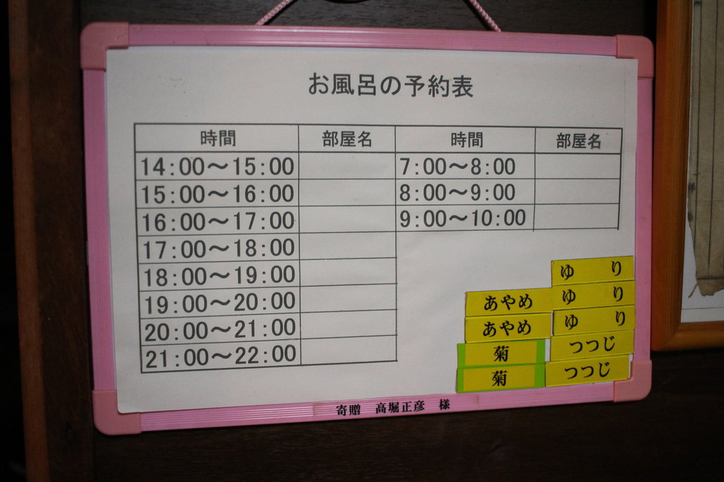 皆さん目一杯お湯に浸かるらしく、予約ボードが交互にびっしり埋まるとその対応だけで疲れてしまう。