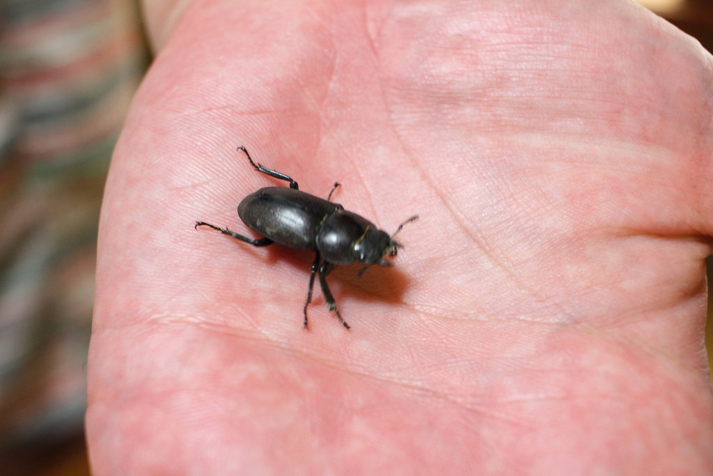 部屋に着いて、まずはコクワガタを部屋から逃します。
