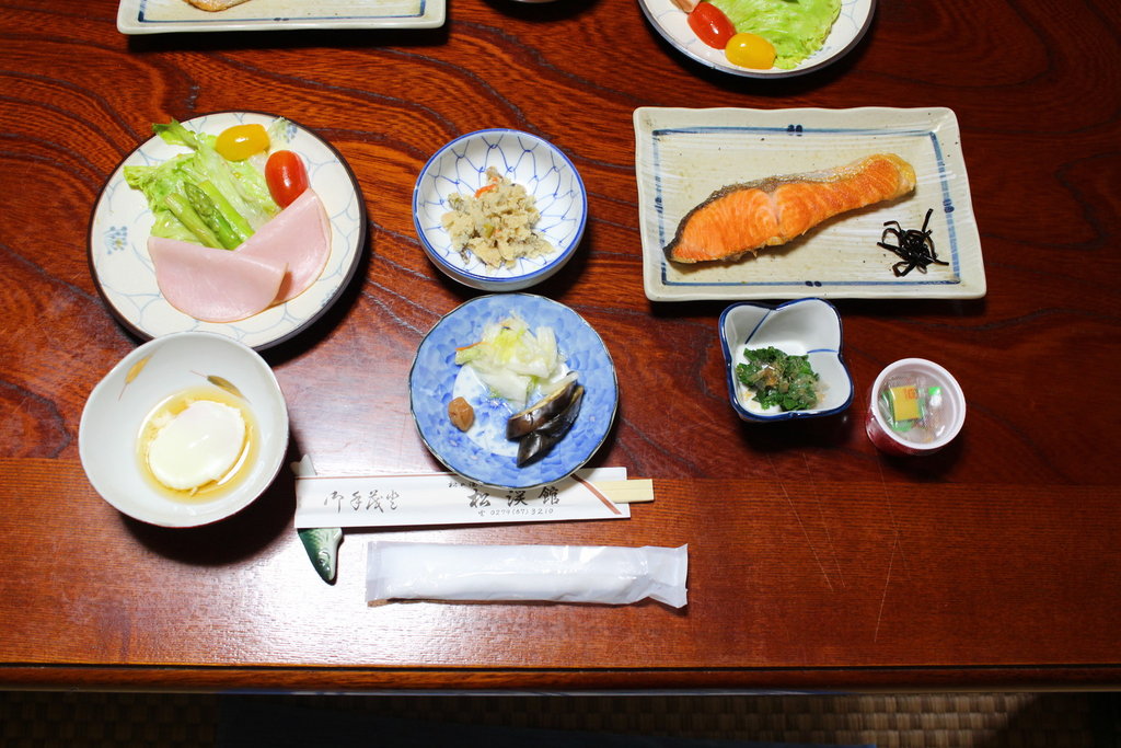 朝風呂は7時から。よく晴れていても、都会のように蒸し暑さはなくて爽やか。