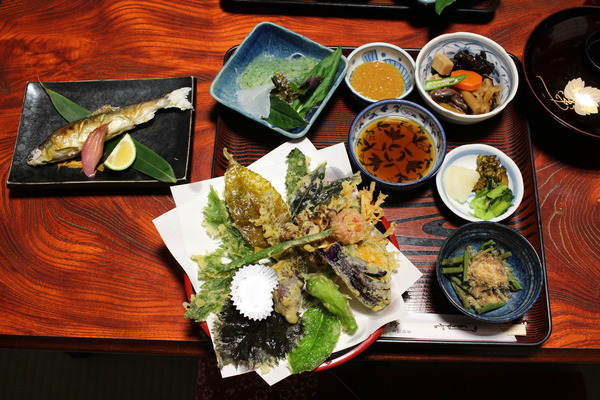 天ぷらは大量。若旦那の「この辺の葉っぱの天ぷら」という表現がなんともアバウトw