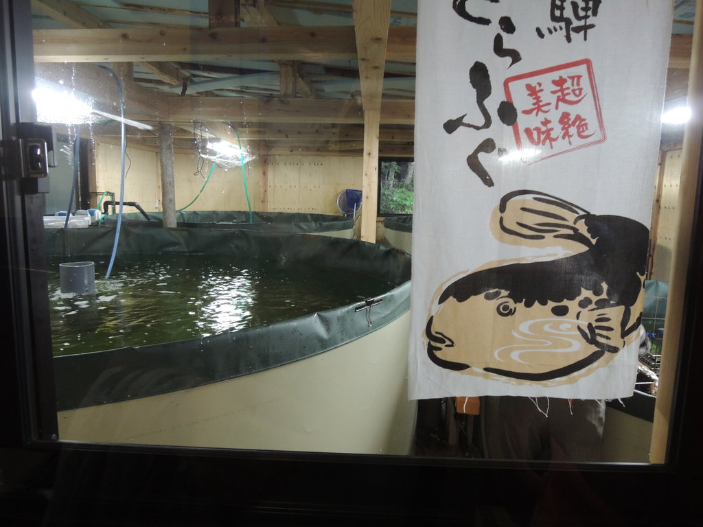 とらふぐを淡水で養殖しています。予約すれば施設内で食べることもできます。