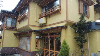 2時に目が醒めたが「風呂は熱いんだろうな」とそのまま布団で過ごしまた寝る明け方から雪の予報だったので5時に外を見ると雪が待っていた。渋温泉の初雪だったそうだ客室から見る眺めは良くないが、源泉の湯気がモウモウと上がるのを眺めることができるので...
