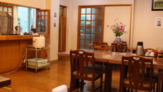 チェックイン時に「夕食は18時か18時半開始」「朝食は7時半か8時開始」と時間を選べた。最近は常に1番早い時間を選ぶ。18時に食堂へ向かう食堂での食事だが、綺麗で居心地が良い混んでるときも和気藹々と食べられるような気がする。恐らく、一番騒が...